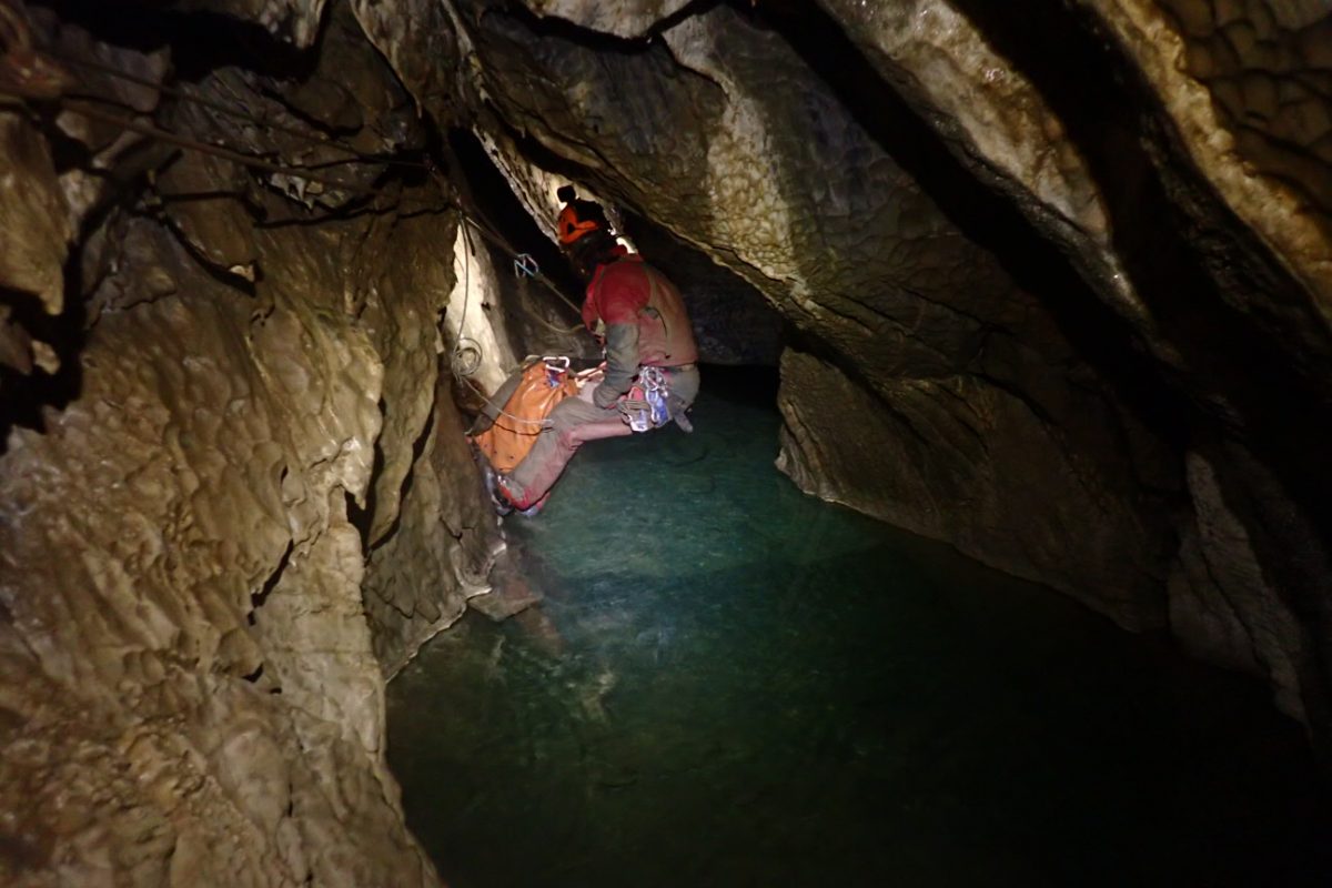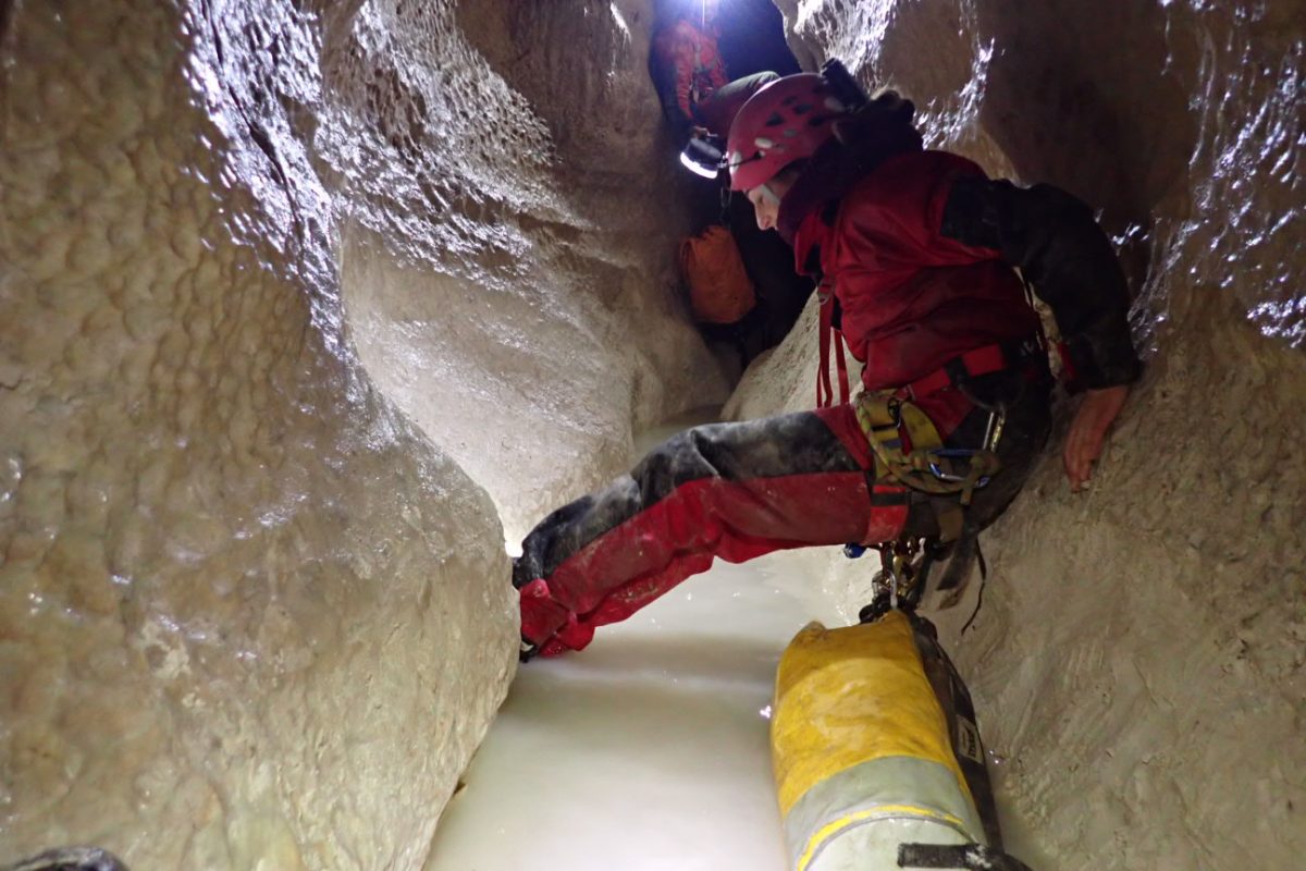 Maig 2016 – Es revisa i topografia la galeria principal, des del Sifó del Vent fins a la paret SOS.